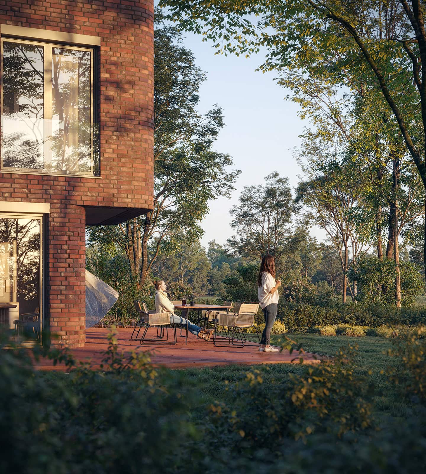 Bodentiefe Fenster und großzügige Terrassen sorgen für eine fließende Verbindung zwischen Innen- und Außenraum und eröffnen einen unverbaubaren Blick in die grüne Parklandschaft und zur Wakenitz.